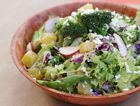 available in side, regular or large size farm goddess dressing, or grainy mustard vinaigrette