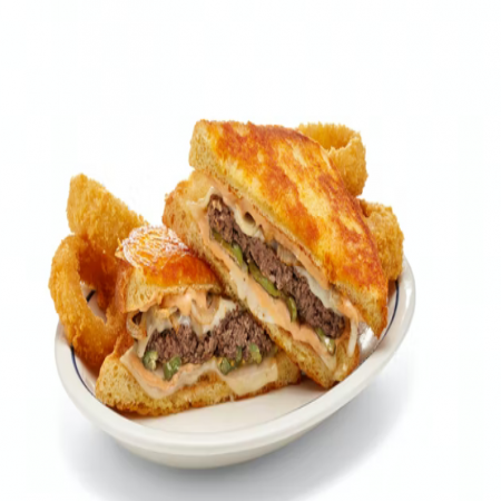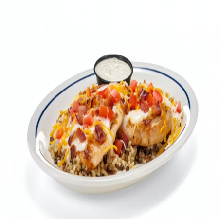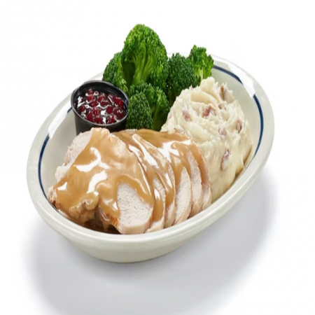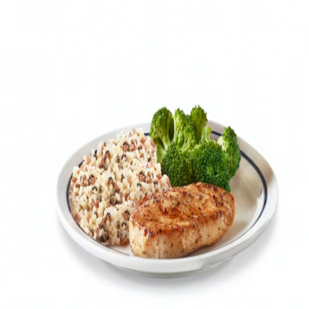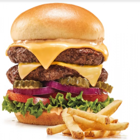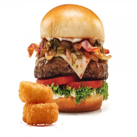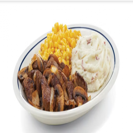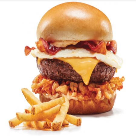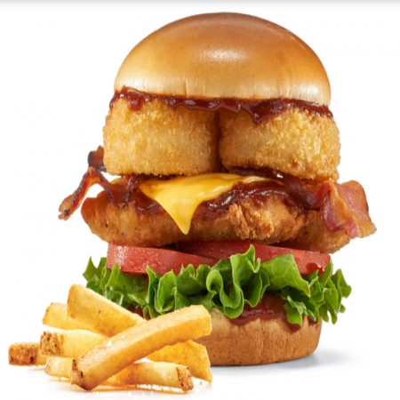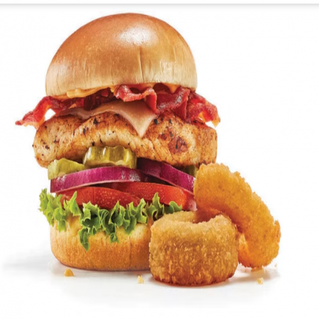 Choice of french fries, onion rings, fresh fruit, 2 buttermilk pancakes, or side salad. Choice of Black Angus Beef Steakburger, Buttermilk Crispy Chicken, Seasoned Grilled Chicken.